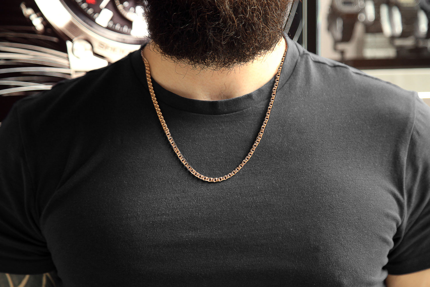 Золотая цепочка или браслет отлично дополнят повседневный и деловой стиль мужчины. Для юбилея можно выбрать изделие средней толщины с классическим плетением, например, «панцирь» или «картье». Такие украшения подчеркивают статус и вкус, при этом остаются универсальными и подходят для любого возраста.