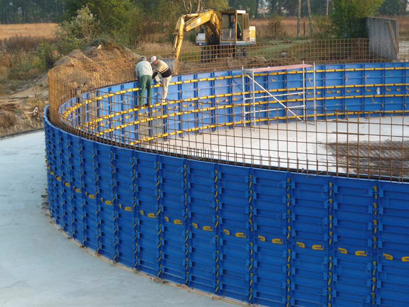 Радиусная опалубка представляет собой сборную систему, которая используется для создания изогнутых бетонных элементов в монолитном строительстве. Конструктивно она состоит из гнутых стальных или фанерных щитов, усиленных ребрами жёсткости, а также регулируемых замков, позволяющих выставить нужный радиус изгиба. Такой подход обеспечивает высокую точность геометрии при возведении арок, резервуаров, туннелей и других объектов со сложной конфигурацией.